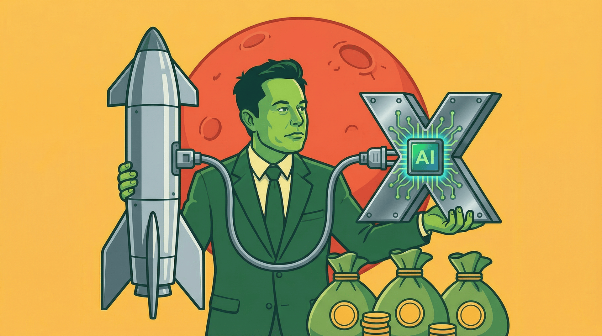 ΠΡΠ΅Π΄ΡΡΠ°Π²Ρ: ΡΡ ΠΈΠ½Π²Π΅ΡΡΠΎΡ, ΠΈ ΡΠ΅Π±Π΅ ΠΏΡΠΈΠ½ΠΎΡΡΡ ΠΏΡΠ΅Π·Π΅Π½ΡΠ°ΡΠΈΡ βΠΠ + ΠΊΠΎΡΠΌΠΎΡ + ΡΠΎΡΡΠ΅ΡΡβ Π² ΠΎΠ΄Π½ΠΎΠΌ ΡΡΠ»ΠΈΡΠ΅. ΠΠ½ΡΡΡΠΈ - SpaceX ΠΊΠ°ΠΊ ΠΌΠ°ΡΠΈΠ½Π° ΠΏΠΎ Π·Π°ΠΏΡΡΠΊΡ ΠΆΠ΅Π»Π΅Π·Π°, xAI ΠΊΠ°ΠΊ ΡΠ°Π±ΡΠΈΠΊΠ° ΠΌΠΎΠ΄Π΅Π»Π΅ΠΉ (Grok), X ΠΊΠ°ΠΊ Π΄ΠΈΡΡΡΠΈΠ±ΡΡΠΈΡ ΠΈ ΠΏΠΎΡΠΎΠΊ Π΄Π°Π½Π½ΡΡ . Π Π²ΡΠ΅ ΡΡΠΎ ΡΠΏΡΠ°Π²Π»ΡΠ΅ΡΡΡ ΠΎΠ΄Π½ΠΈΠΌ ΡΠ΅Π»ΠΎΠ²Π΅ΠΊΠΎΠΌ, ΠΊΠΎΡΠΎΡΡΠΉ Π»ΡΠ±ΠΈΡ ΡΠΎΠ±ΠΈΡΠ°ΡΡ βΡΠΊΠΎΡΠΈΡΡΠ΅ΠΌΡβ Π² ΠΎΠ΄ΠΈΠ½ ΠΊΡΠ»Π°ΠΊ.