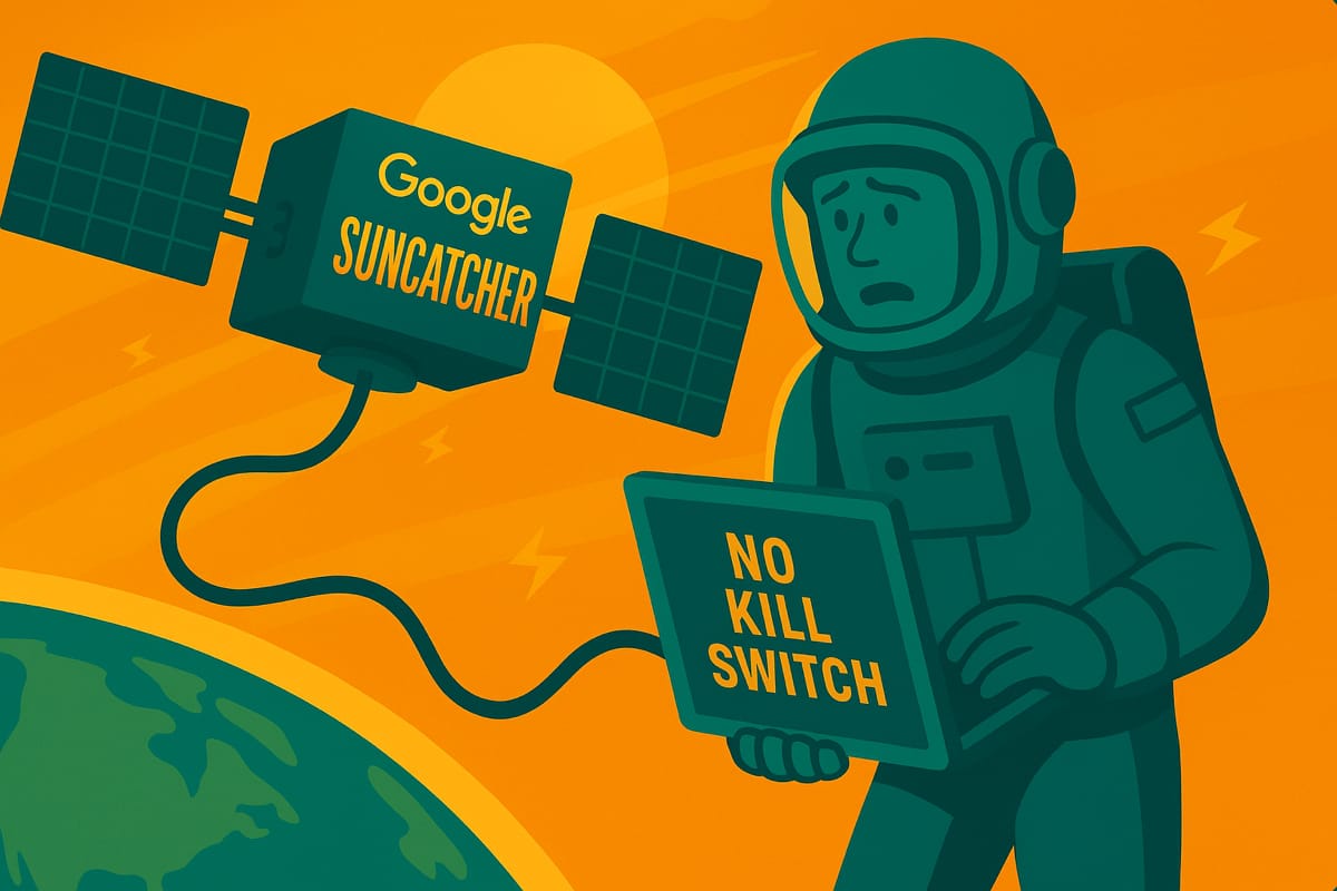 Project Suncatcher — новая луна Google. План: вынести обучение ИИ на спутники с собственными TPU-чипами и солнечными панелями. Орбита — рассвет-закатная, там солнце почти 24/7, и панели дают до 8 раз больше энергии, чем на Земле. В 2027 они запускают два прототипа с Planet Labs, чтобы проверить, работает ли всё это в реальности.