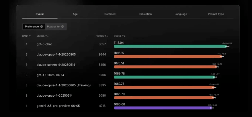 Вот сюда и заходит Scale с SEAL Showdown. Это лидерборды по реальным предпочтениям с разметкой по людям. Их контрибьюторы в ~100 странах и ~70 языках сравнивают фронтир-модели «бок о бок» в Playground, голосование добровольное, сырые данные складируют на 60 дней, чтобы не крутили. На выходе — не «топ-1 вообще», а срезы: язык, возраст, образование (дальше — профессии). Видно, какая модель понятнее новичкам, какая аккуратнее для юристов 45+, где испанский и арабский совпадают с английским, а где разъезжаются. Это инструмент закупки и роутинга, а не витринный кубок.