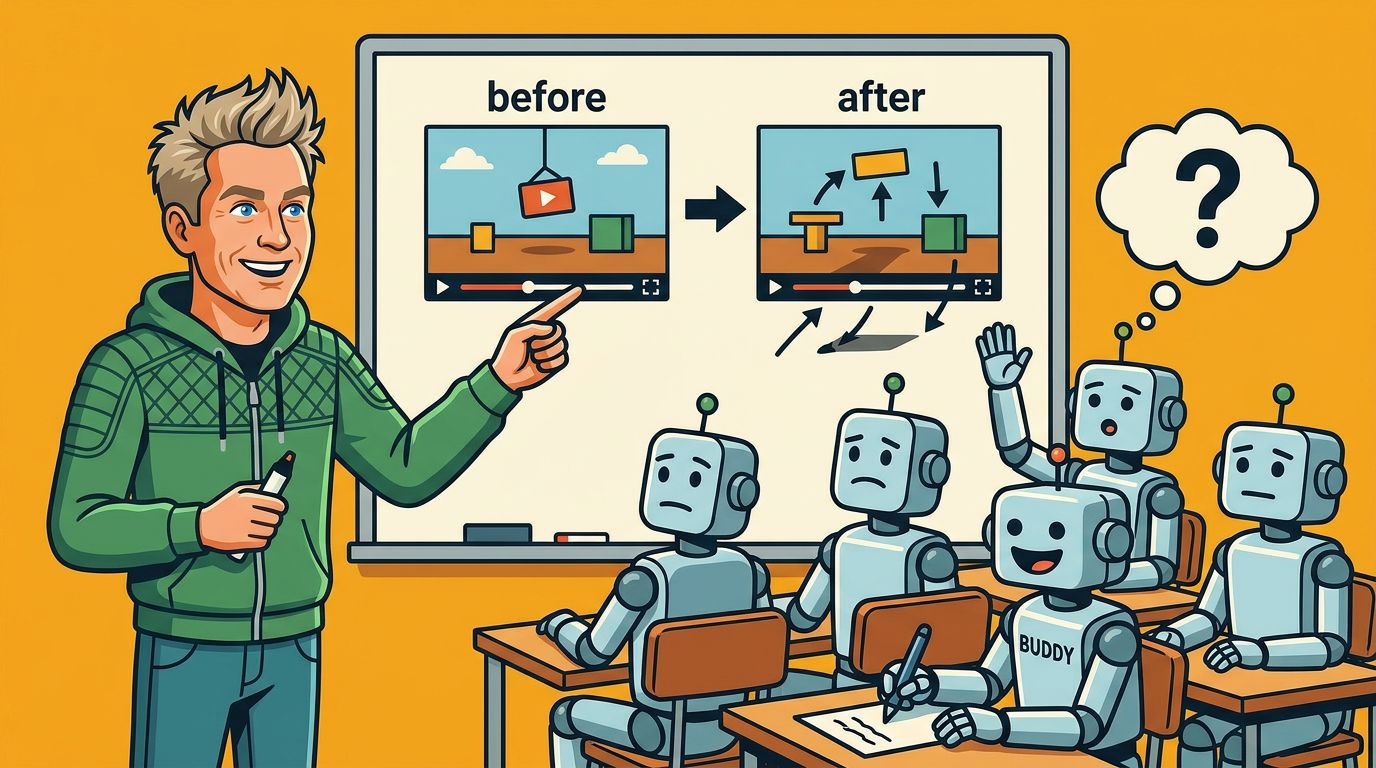 Netflix Research выпустил VOID (Video Object Inpainting and Dynamics) в открытый доступ. Система удаляет объект и просчитывает последствия: что меняется в сцене, как реагируют связанные объекты, что происходит с физическим состоянием соседних элементов. Шарик взлетает, когда убирают того, кто его держит. Блоки не падают, если исчезает один из цепочки, а не опорный.
